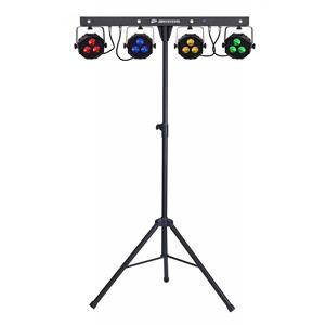 Algam Lighting Stagebar II met 4 RGB LED-parren & 4 stroboscoops op statief